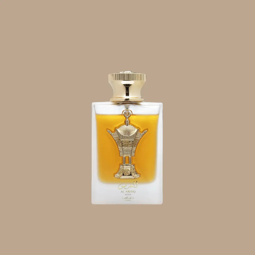 Al Areeq Gold de Lattafa Perfumes es una fragancia unisex que combina sofisticadas notas amaderadas y especiadas. Se abre con una poderosa mezcla de té negro y azafrán, seguida de un corazón de gamuza, cuero e incienso que aporta profundidad y carácter. La base cálida y sensual de vainilla, almizcle y amberwood deja una estela elegante y duradera.