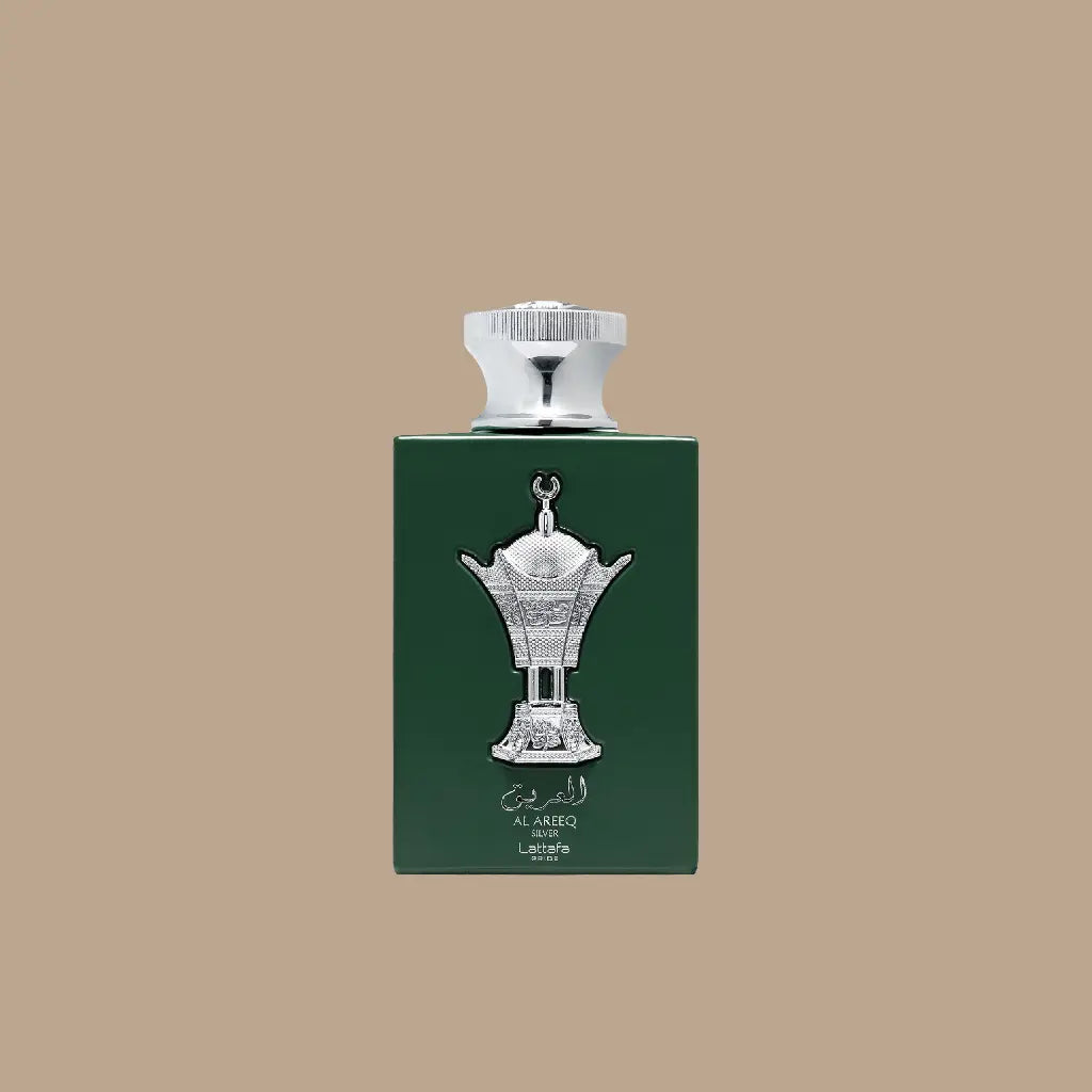Al Areeq Silver de Lattafa Perfumes es una fragancia unisex lanzada en 2022 que destaca por su mezcla intrigante de notas dulces, especiadas y amaderadas. Se abre con la frescura afrutada de la manzana, suavemente acompañada de lavanda y un toque cálido de cardamomo. Su corazón revela una combinación elegante de tabaco, ciprés, oud y jazmín, aportando profundidad y carácter. Finalmente, las notas de cuero, sándalo, vainilla y almizcle crean una base envolvente, duradera y sensual.