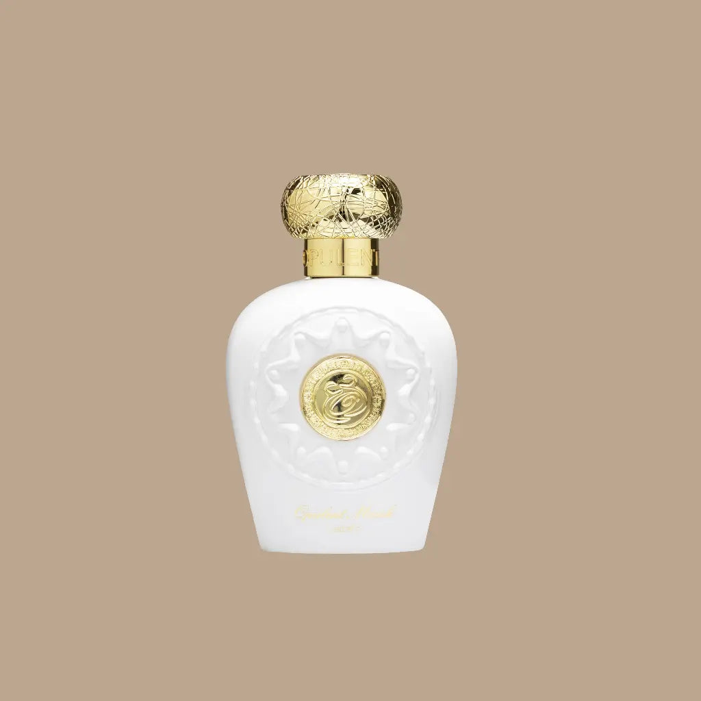 Opulent Musk de Lattafa es una fragancia femenina de la familia olfativa Oriental, lanzada en 2019. Esta fragancia captura la esencia de lo sofisticado y lo fresco, combinando almizcle blanco, azafrán y un toque de limón para una apertura refrescante, mientras que las flores blancas y jazmín en el corazón le aportan elegancia y frescura. Finalmente, sus notas de fondo de almizcle blanco, cedro, ámbar y resinas brindan una base cálida y duradera.