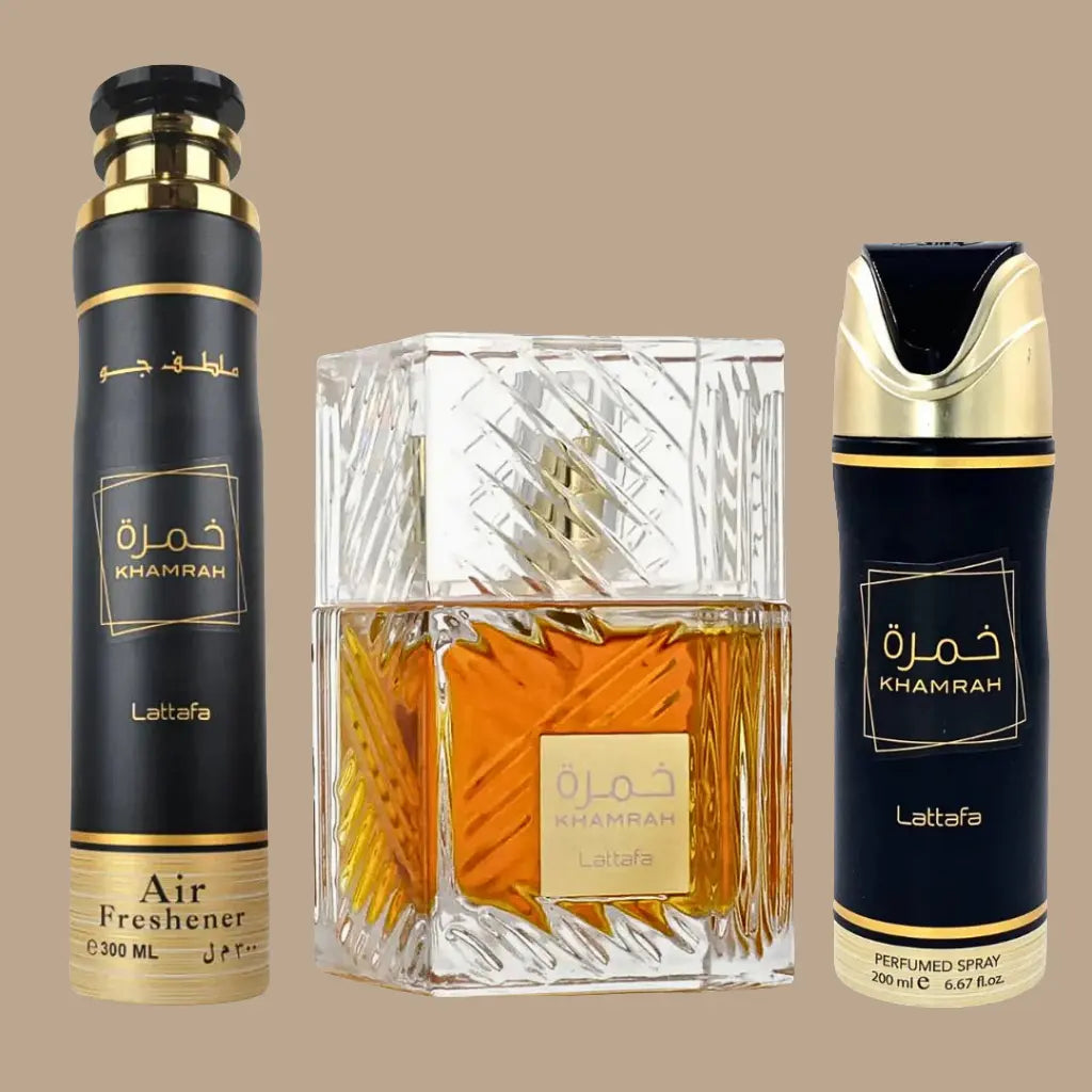 Pack Khamrah de Lattafa – Set de Perfume, Desodorante y Ambientador para Mujer